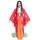前合わせ付だから何枚も重ねて着ているように見えるのがポイントの着物。 赤に鮮やかな花柄はとても華やかにみえます。 着物のように見えるオレンジ色のスカートはウエストがゴムの仕様なので着脱も簡単です。 大奥やおお姫様をイメージしたコスチュームなので丈は少し引きずる長さになっています。 【仕様】 羽織=前リボン、スカート=ウエストゴム サイズ/身長155〜165cmくらい対応、胸囲90cmまで、胴囲70cmまで、腰囲96cmまで、羽織丈180cm、肩幅54cm、袖丈49cm、スカート丈92cm 素材/ポリエステル 【セット内容】 羽織、スカート 【備考】 モデル身長154cm 洗濯不可 仮装・変装・モノマネ・演劇・時代劇・昔話・かぐや姫のCM風