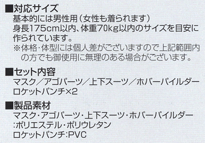 パイルダー、マスク&アゴパーツ、上下スーツ、ロケットパンチ×2