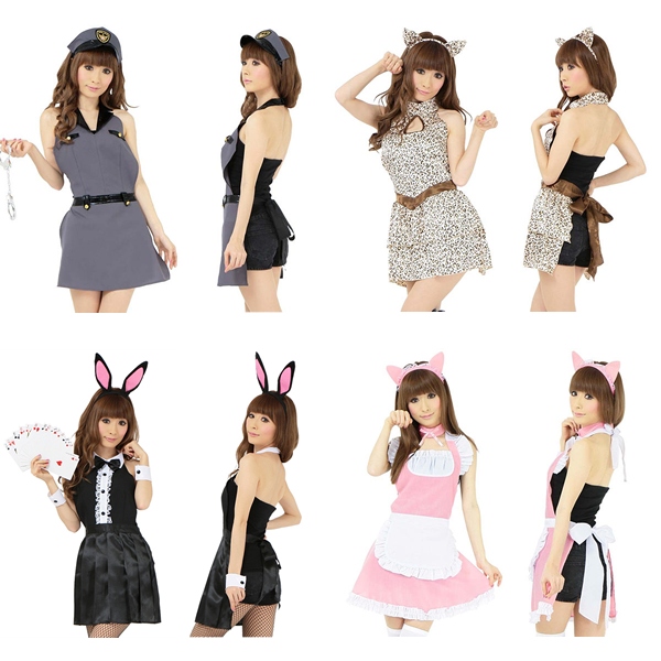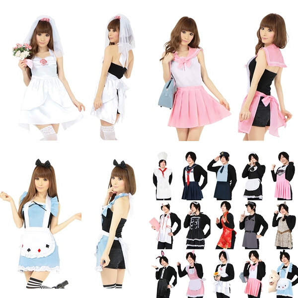エプロン(シェフ・ポリス・メイド・ナース・ロリータ・アーミー・パンサー・バニーガール・ネコ耳メイド・ウェディングドレス・ブルーメイドは、写真の頭部飾り付き)