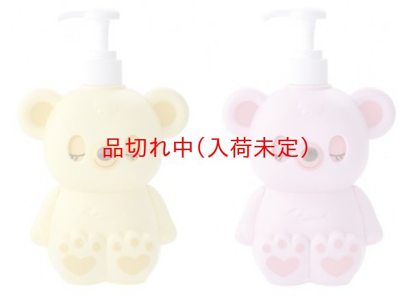 ポンプを押すと、クマさんの目が開いて手が上がります。