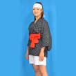 サイズ/身長155〜170cm、胸囲〜約90cm、胴囲〜約80cm、腰囲〜約90cm、上衣=着丈約80cm×裄丈約65cm、パンツ=丈約38cm、赤帯=幅約10cm×長さ約2m50cm、ハチマキ幅約7cm×長さ約88cm