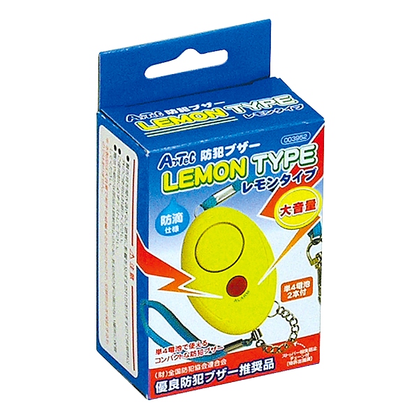 単4電池で使えるコンパクトなレモン型防犯ブザー。