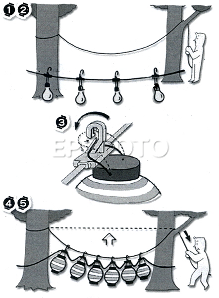 電装用コードですので、まずロープ等を張って、そのロープにこのコードを吊るして下さい。ロープ等で電気コード及び提灯の荷重を支える前提で、ご使用頂く様お願い致します。