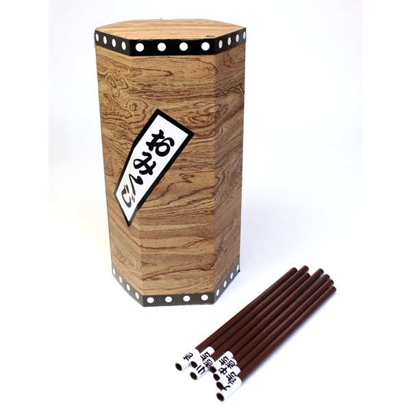 素材/箱(筒)=段ボール、おみくじ棒=プラスチック(PVC)