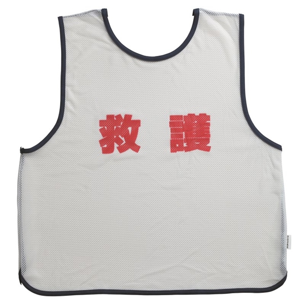 「救護」の文字を両面にプリントした、一般用フリーサイズのメッシュビブスです。