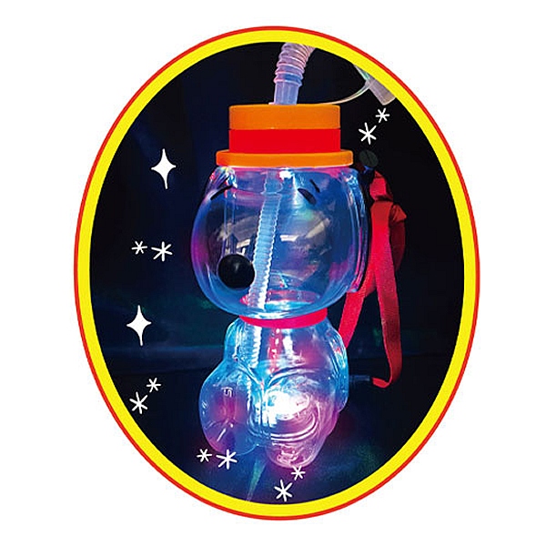ボトル底のLEDライトが光り、ジュースなど液体を入れると、光に反射して幻想的な世界が広がります。