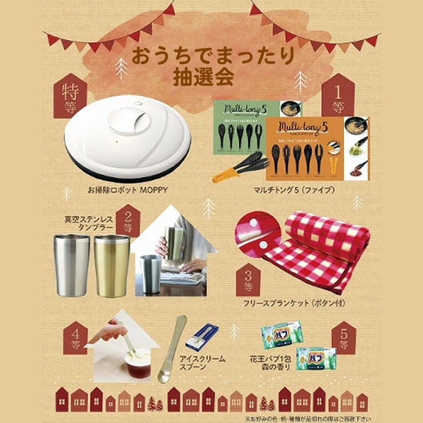 寒い日のおうち時間にうれしいアイテムがもらえる30人用の抽選会。