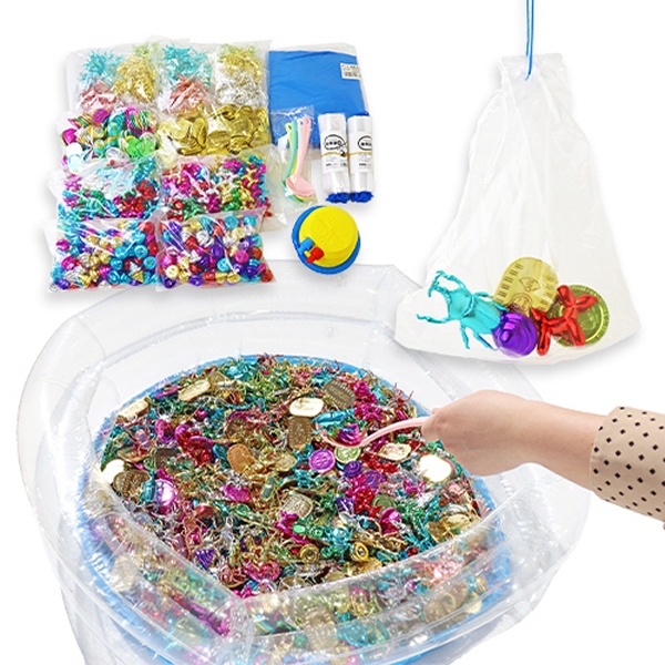 きらぴかアイテム1000ヶ、お玉4ヶ、60cmプール1ヶ、ポンプ1ヶ、持ち帰り袋200ヶ
