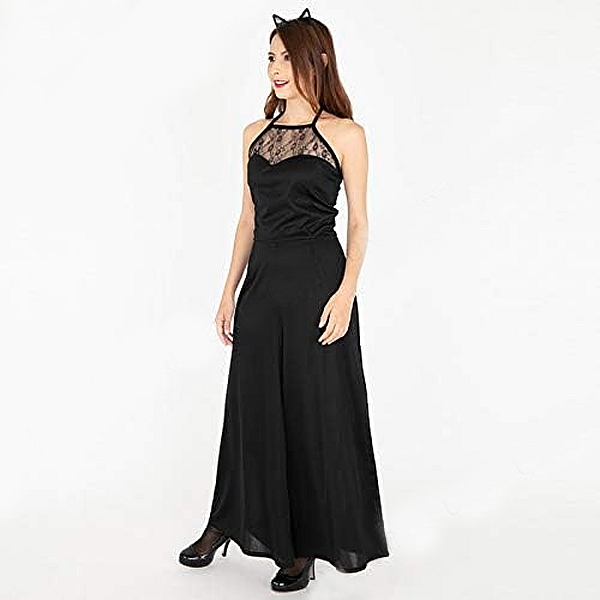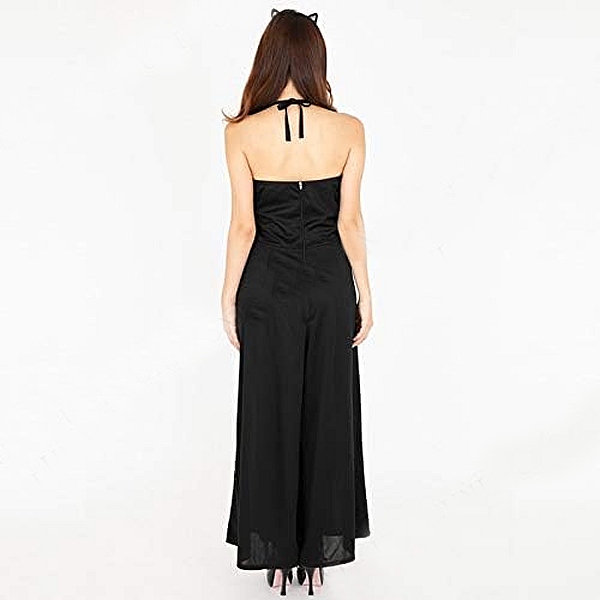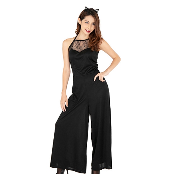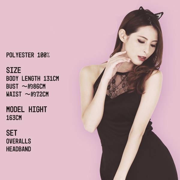 クールな黒一色のキャットコスチュームです。おしゃれで上品なオールインワンパンツスタイル!