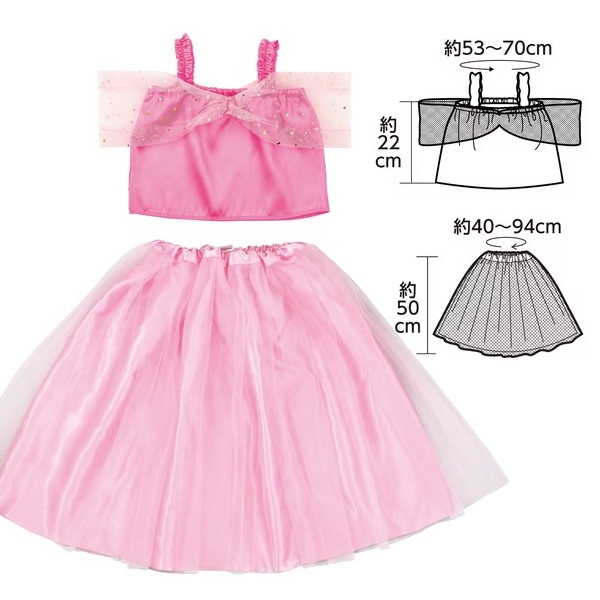 トップス着丈約22cm、胸囲約53〜70cm、肩紐約17cm、スカート総丈約50cm、ウエスト約40〜94cm