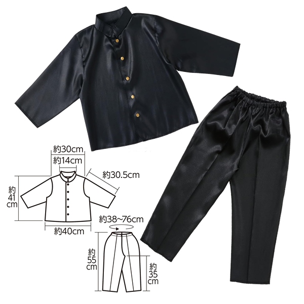 サイズ/トップス肩幅30cm×袖丈30.5cm×着丈41cm、ズボン着丈約55cm×ウエスト約38〜76cm