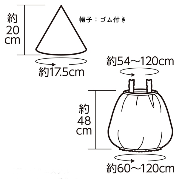 サイズ/サロペット総丈約50cm×脇下ゴム約54〜120cm×下ゴム約60〜120cm、帽子高さ20cm