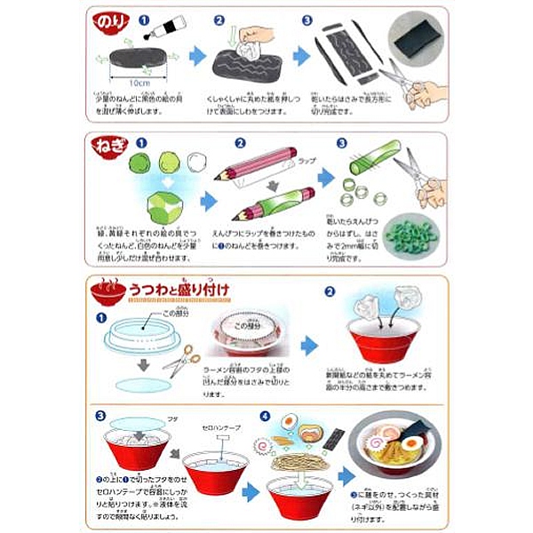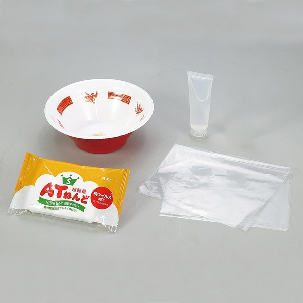 ラーメン容器蓋×1、ラーメン容器本体×1、ゼリーキャンドル×2、ATねんどS×1、ポリ袋×1
