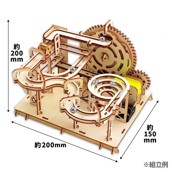 パーツ板×8種、電池ボックス×1、モーター×1、やすり×1、ドライバー×1、鉄球×5、両面テープ×2、ボルト×2、ナット×2